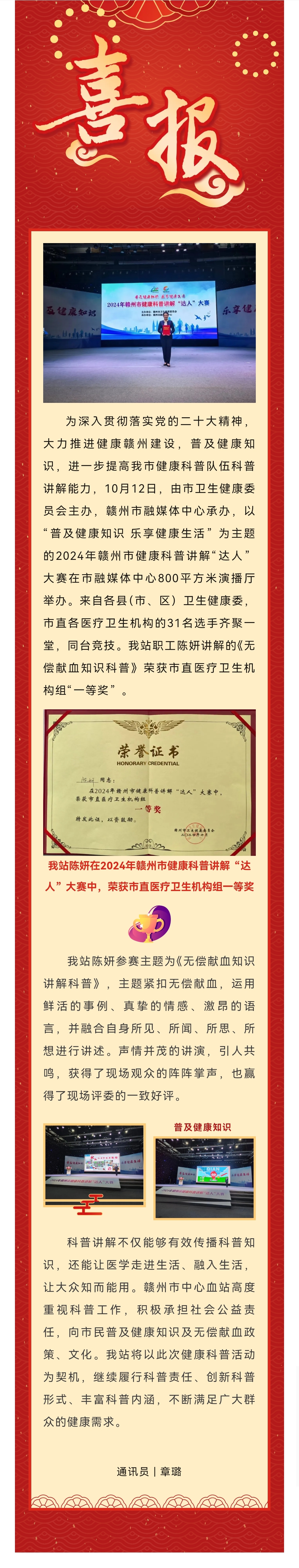 喜讯丨我站在2024年赣州市健康科普讲解“达人”大赛中荣获一等奖