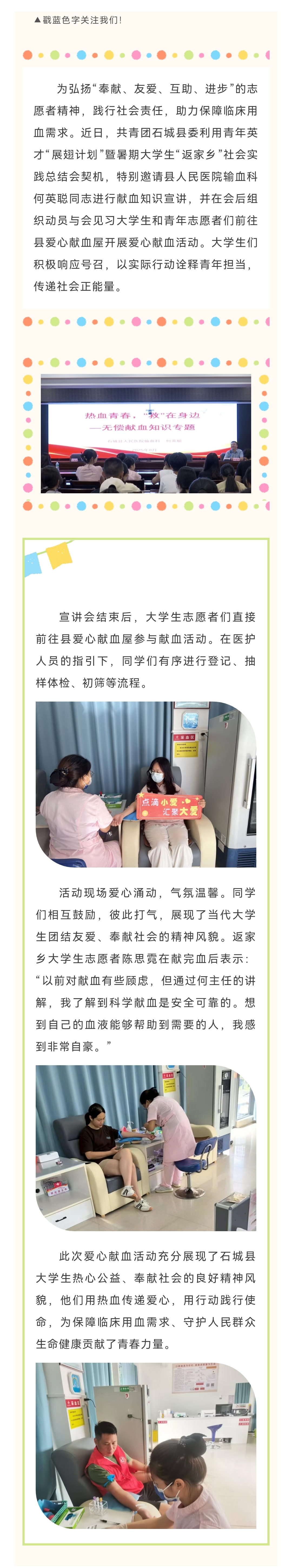 共青团石城县委组织大学生志愿者开展爱心献血宣传活动