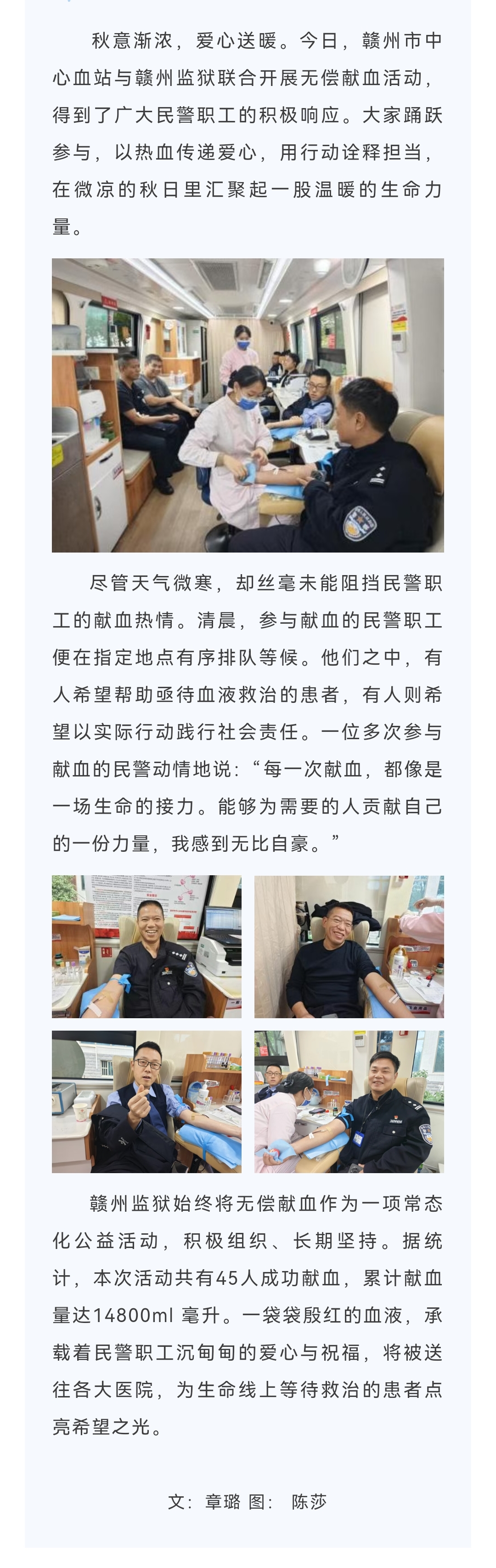 致敬热血英雄!赣州监狱民警45人为爱接力