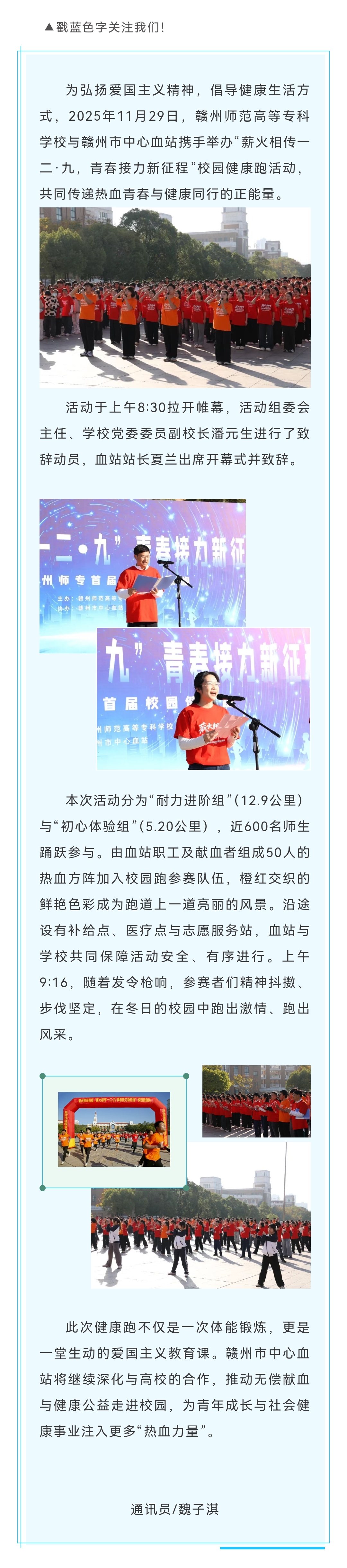 携手校园健康跑,共筑青春热血梦——赣州市中心血站协办赣州师专首届校园健康跑活动