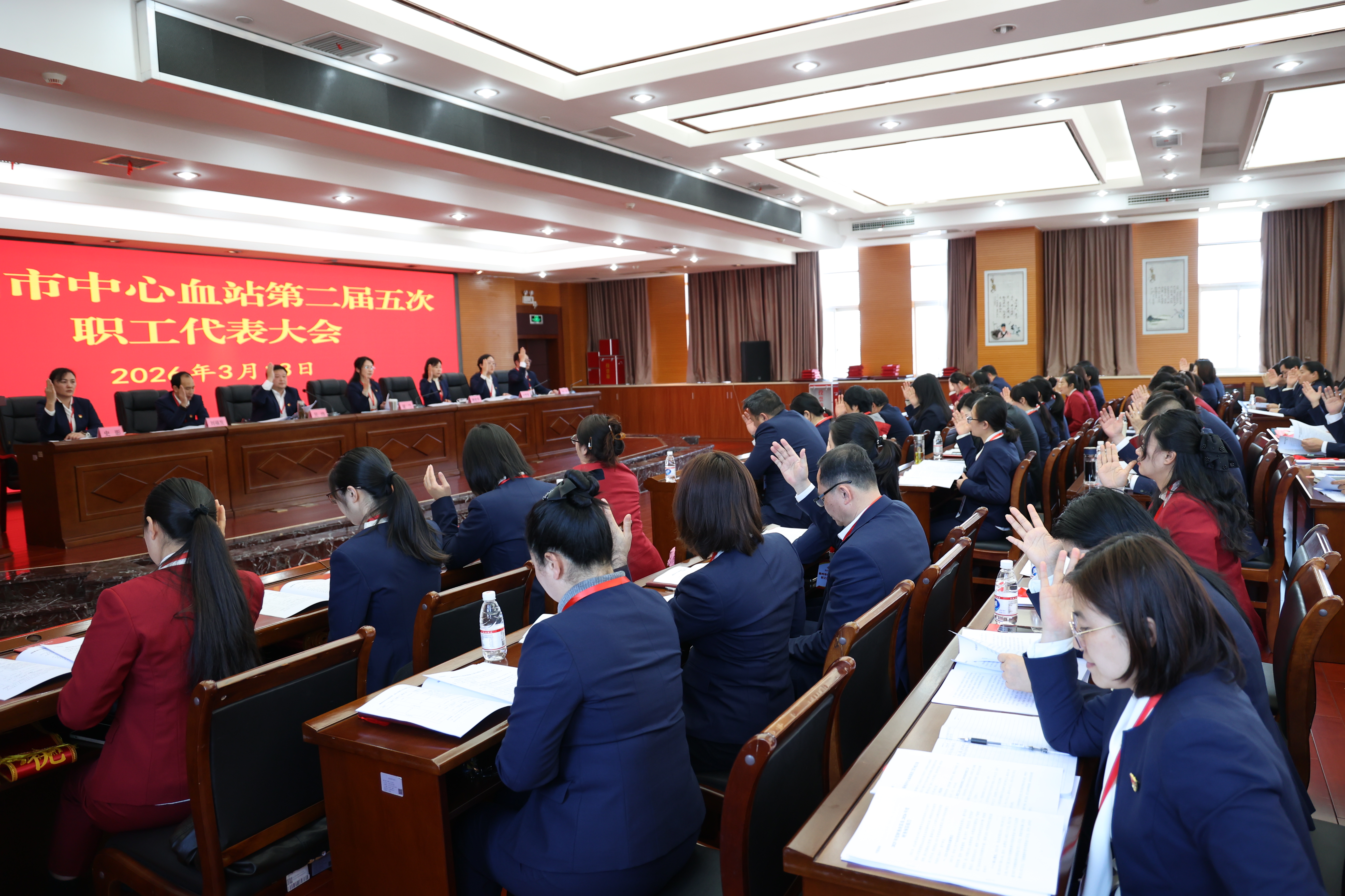 3月13日下午,赣州市中心血站第二届五次职工代表暨工会会员代表大会在十五楼会议室隆重召开,站党支部书记、站长夏兰讲话,副站长赖建秀作2025年工作报告,副站长吴炜主持会议,全站近60名职工代表齐聚一堂,共商采供血事业发展大计,擘画2026年高质量发展新蓝图。